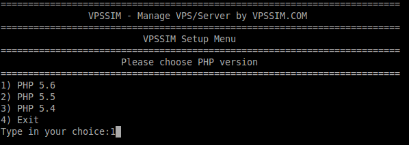 ========================================================================= VPSSIM - Manage VPS/Server by VPSSIM.COM ========================================================================= VPSSIM Menu ========================================================================= 1) Add Website & Code 11) Cronjob Manage 2) Remove website 12) CSF Firewall Manage 3) Backup code & Config 13) IPtables Firewall Manage 4) Check & Block IP DOS 14) Setup SSL (https) 5) Database Manage 15) Download Log file 6) PhpMyadmin Manage 16) Tools - Addons 7) Zend OPcache Manage 17) Upgrade / Downgrade PHP 8) Google pagespeed Manage 18) Server Status 9) Memcached Manage 19) Update VPSSIM 10) Swap Manage 20) Exit Type in your choice: